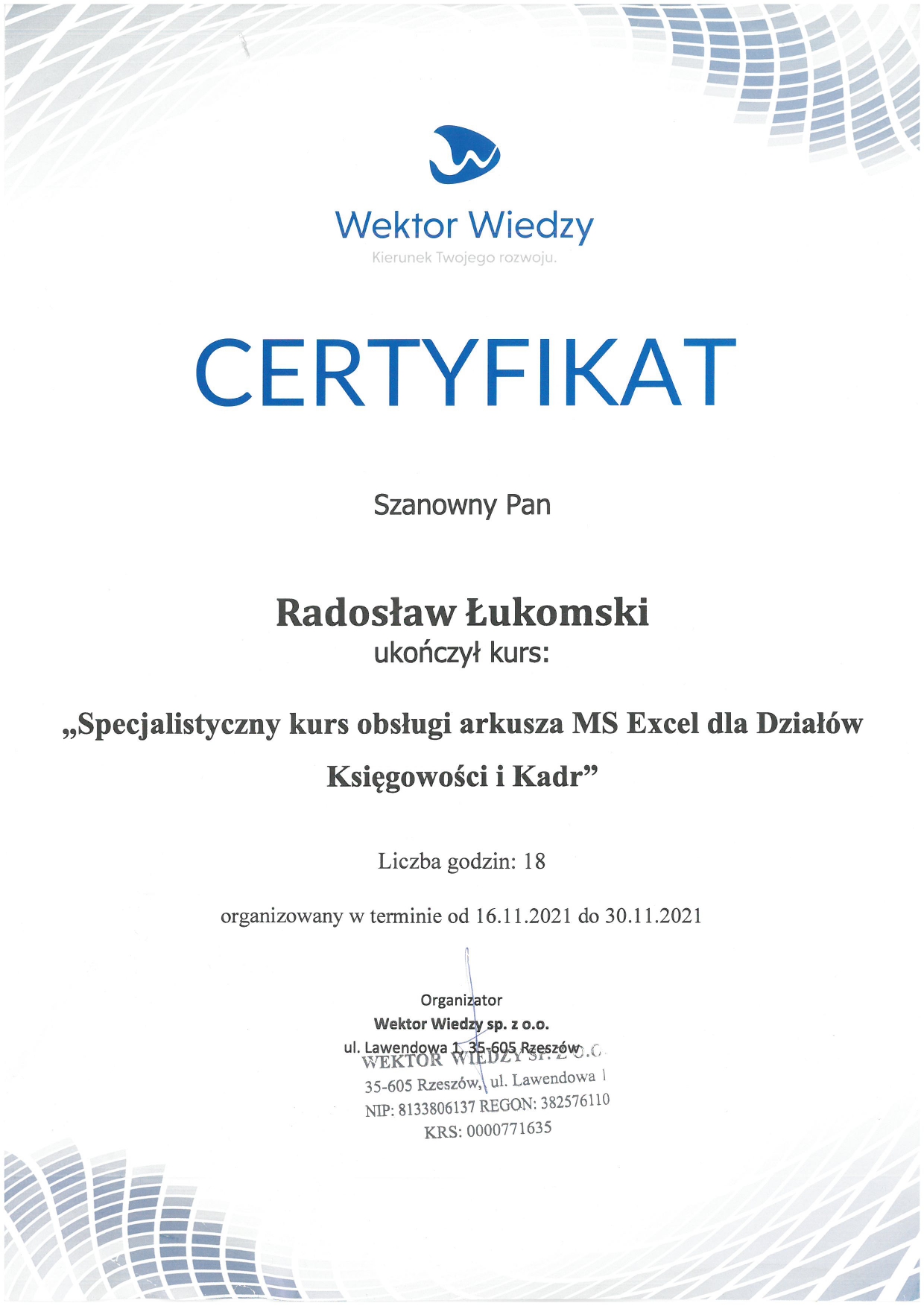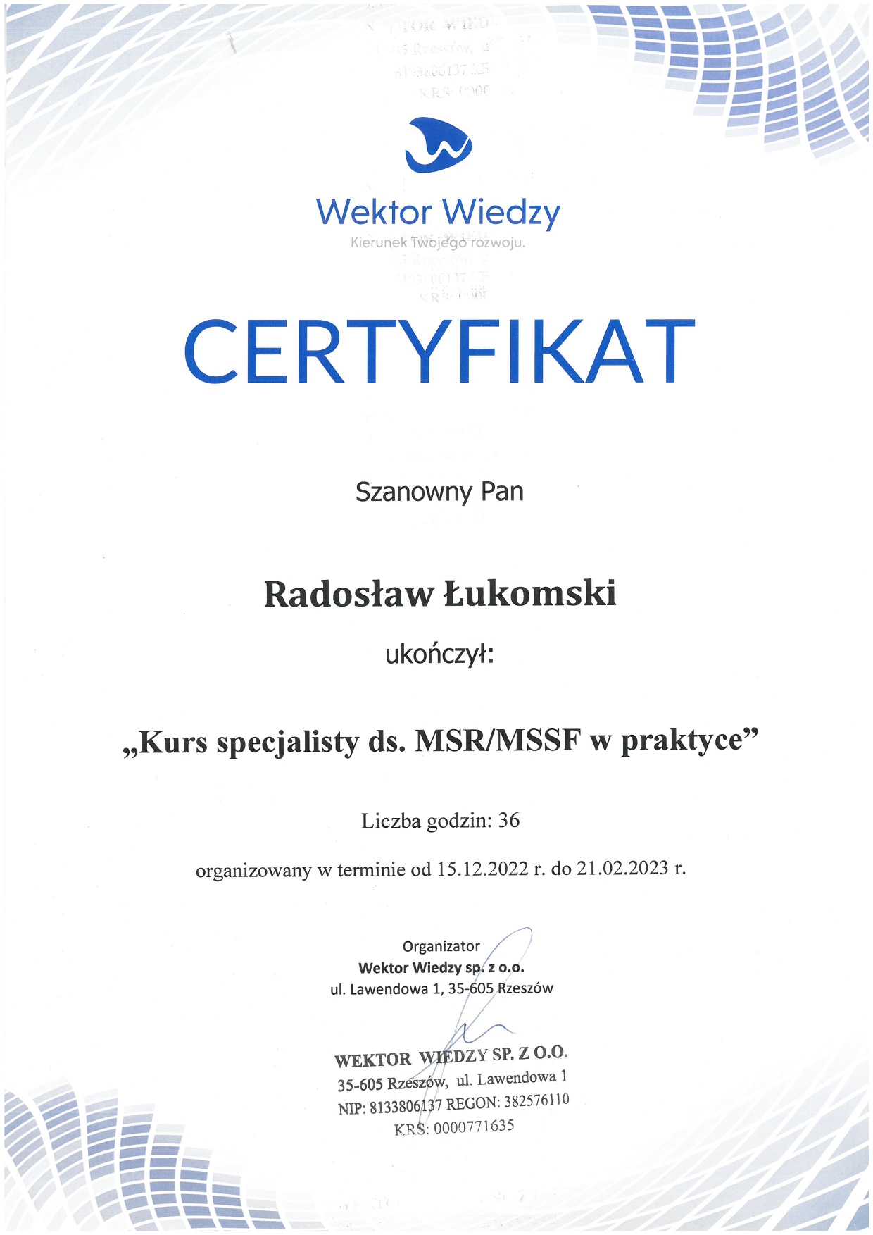 możliwość rozwoju zawodowego i zdobywania certyfikatów